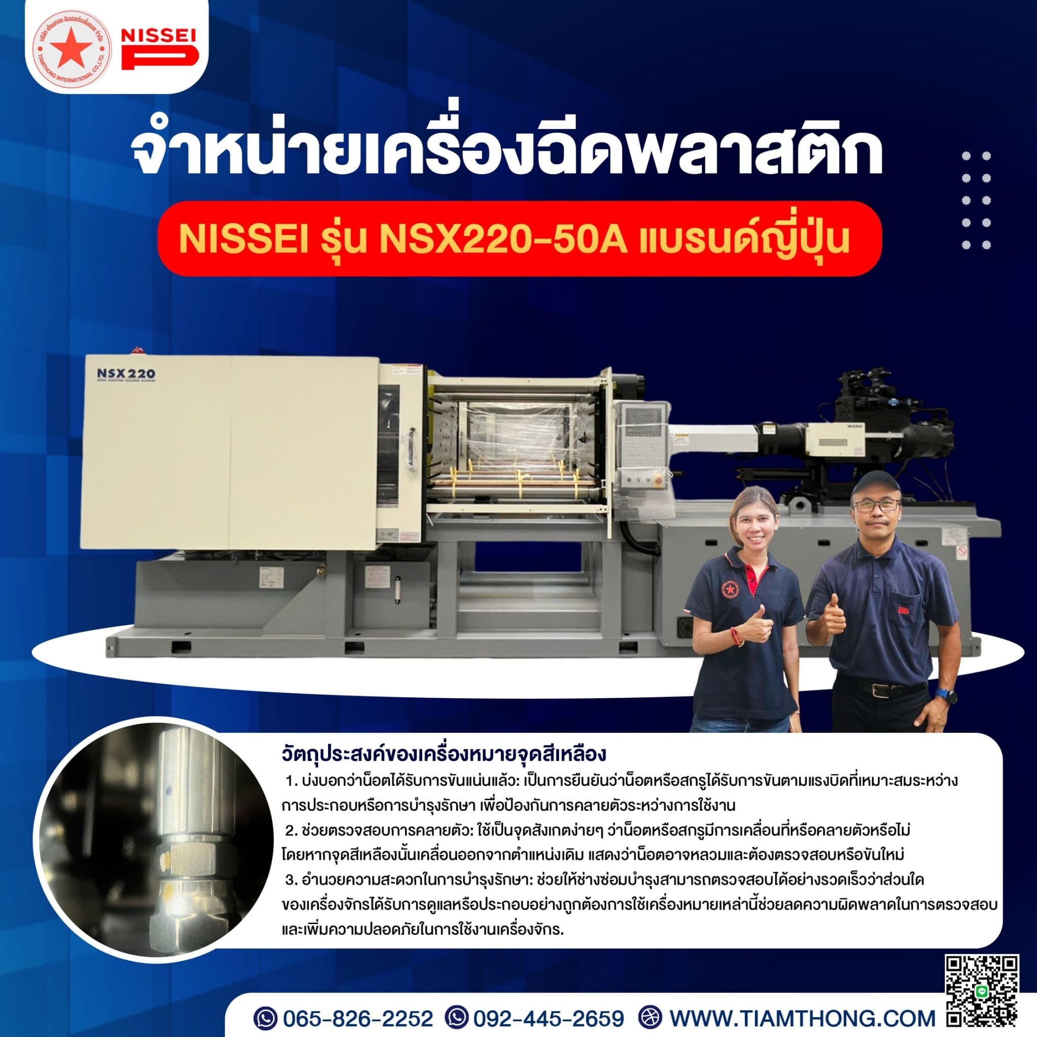 บริษัท เทียมทอง อินเตอร์เนชั่นแนล จำกัด เป็นตัวแทนจำหน่ายเครื่องฉีดพลาสติก NISSEI เป็นเครื่องฉีดพลาสติกแบบระบบไฮบริด รุ่น NSX220 ประหยัดพลังงานเน้นคุณภาพงานฉีด